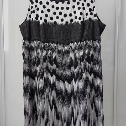Voglian mustavalkoinen mekko, kangas puuvillaa ja pellavaa. Kainalo-kainalo n. 50 cm.