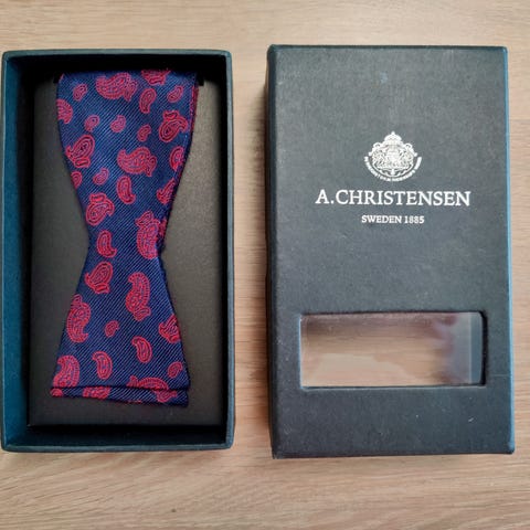 Laadukas, kotimainen Matexin solmuke. Lila/sininen. Kts. https://verkkokauppa.matex.fi/tuote/rusetit/kuosilliset-rusetit/sininen-kukka-rusetti/