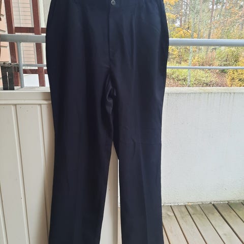Housut ovat uudet ja käyttämättömät, mutta housujen lahkeet on leikattu, koska ovat omaan käyttöön liian pitkät, ja oli tarkoitus lyhentää housuja (kts. kuvat). Ompelutaitoiselle ja lyhyt jalkaiselle naiselle erinomainen hankinta; housuista voi tehdä omiin mittoihin sopivat ja esimerkiksi vaikkapa capri housut. Kuvien mukaiset ja kuvien mukainen kunto. 🖤
