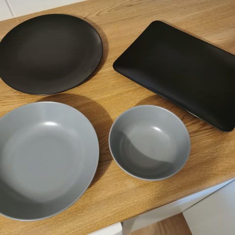 Lisäksi mukaan saa halutessaan yhden syvän lautasen, yhden ison lautasen sekä yhden pienen lautasen, joissa särö.