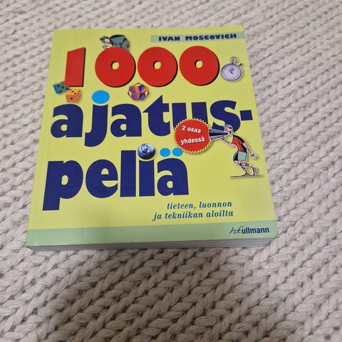 Käyttämätön 1000 ajatuspeliä-kirja. Sisältää siis tuhat erilaista tehtävää tieteestä, luonnosta ja tekniikasta.