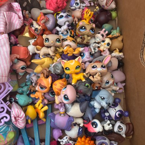 Littles Pet Shop Lps figuureja noin 40kpl ja muutakin leikkiin sopivia tavaroita.