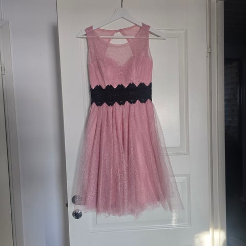 Vihreä juhlamekko H&M, koko XS, kk 40, oh 95, lyhyet hihat, takana vetoketju, valossa kangas kimalteleva, joustava kangas.