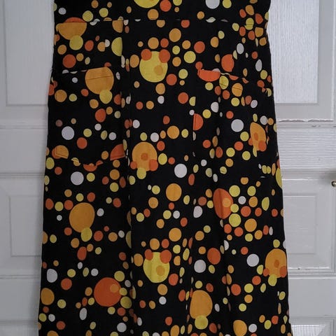 Kaunis vaaleankeltainen essu, jossa koneellisesti tehdyt kukkakirjonnat ja poimutettu helmakaitale. Pituus 45 cm, vyötärökaitale 50 cm. Solmintanauhat 50 cm. Ehjä ja siisti muuten, mutta muutama haalea kellertävä tahra. Postitus tai nouto.