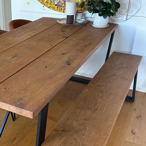 Tamminen tukeva penkki, suunnittelija Kaarina Huhtiniemi SIO.