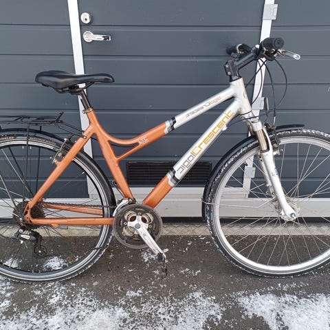 Hyvä polkupyörä, kaikki toimii, ruostetta joissain vanteista ja tangossa, takalokasuojassa hieman lommoja. 28 tuumaa, 24 vaihdetta ja levyjarrut edessä ja takana. Lukko rungossa. Nouto. Ei tinkivaraa.