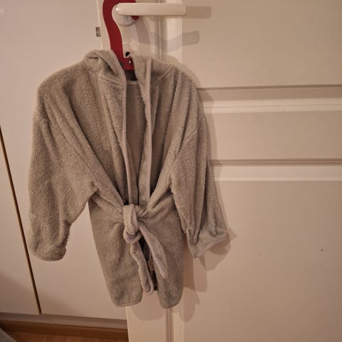 Kuvan mukainen kylpytakki. Sopii 2-3 vuotialla..