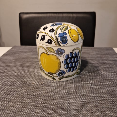 Arabian (Iittala) Paratiisi rasia kannella, valkoinen 0,43 l pohjassa musta paratiisikuvio