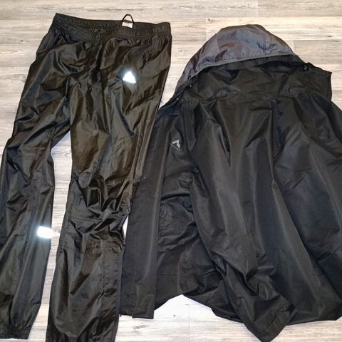 Didriksons tuulipuku 160 koossa, muuten hyvässä kunnossa mutta pientä kulumaa takin taskujen kohdalla.