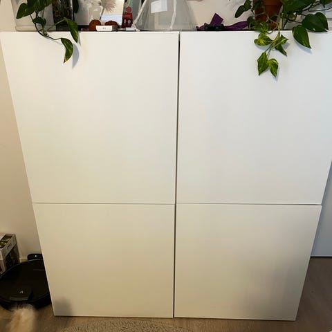 Ikean kaappi punaisilla korkeakiilto ovilla.