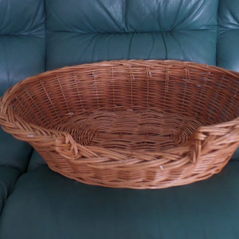 Tukeva metallinen kori, jossa paksu naru. Sisään saa mukaan pehmeän tyynyn.