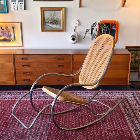 Rottinkinen korituoli /bambutuoli paksulla 8cm istuinpehmusteella. Tuoli on n.1970-luvulta