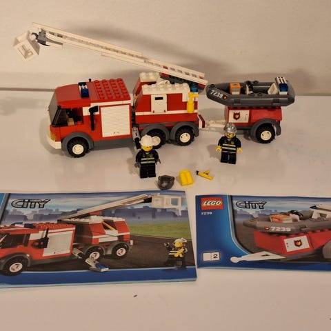 Vähänleikitty Legon paloasema-setti (60414). Mukana paloauto, jossa tikkaat ja vesitykki, 5 minifiguuria ja koira. Kaupanpäälle helikopteri (Lego 60411).