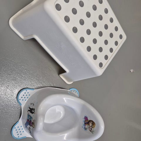 Valkoinen potta Frozen-prinsessojen kuvilla. Suht hyvä kunto, jotain pientä naarmua löytyy. Nouto Pihlajamäestä.