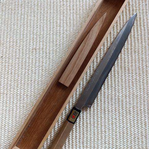 Japanilainen konetaottu hiiliteräs. Kokoterä eli ei kerrosterä. Mitattu kovuus 60 hrc.