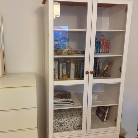 Puustellin seinäkaappi (lasiovet ja -hyllyt)