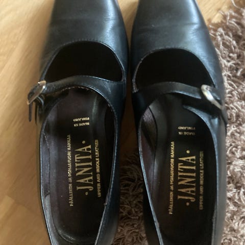 Janita nahka korkokengät. H 1/2 kokoa. Hyvässä kunnossa ja made in Finland. Voidaan neuvotella hinnasta. Paljon muita kenkiä myös myynnissä.
