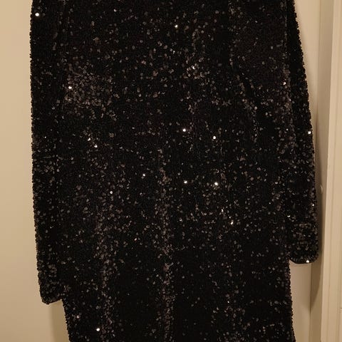 Kuvien mukainen näyttävä uusi Bershkan paljettimekko. Laput ja varapaljetit vielä tuotteessa kiinni. Koiratalous, joten jokunen karva voi tulla mukana putsauksesta huolimatta. Noin mittoja löytyy kuvista.