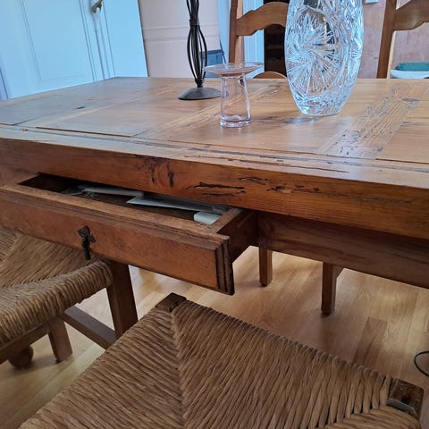Kumipuupöytä sekä kaksi tuolia