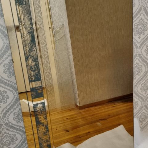 Kuvassa näkyvä palapeili.Peilit ovat moitteettomassa kunnossa ei säröjä ja kulmat ehjät. Peileistä löytyy nätit koriste urat. Mukaan tulee 4 peili osaa MUTTA seinäkiinnikkeet löytyy kolmelle palalle. Yksi mukaan vaikka varaosaksi tai jos on taitoa niin saahan senkin seinälle.