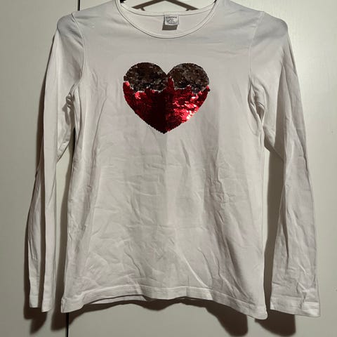 Lindexin paita koko 134/140. Kuvatessa huomasin alareunassa pientä vaaleaa tahraa (en tiedä lähteekö tahran poistolla). Normaalia pesussa tullutta haalistumaa, mutta muuten siisti, käyttökuntoinen paita.