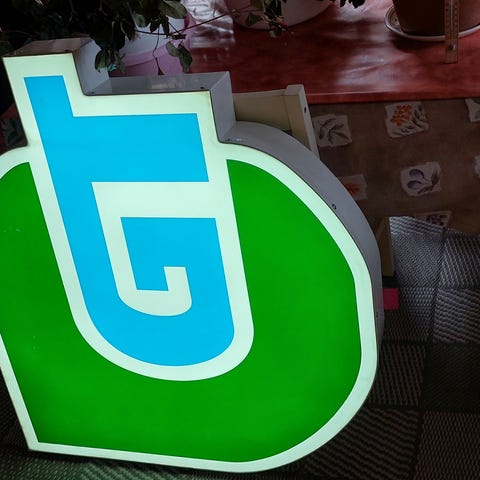 Vähä isompi mäkkärin valomainos..n.2m kanttiinsa ja n.50cm paksu..loisteputkia sisällä..tuskin toimii..toinen puoli rikki ja M-kirjain poistettu..pirun painava..pistä oma pikaruokala pystyyn..mancave,äijäluola,pihavalo..