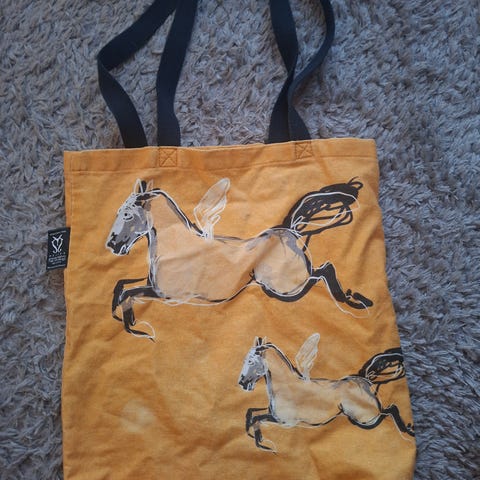 Tukeva kangaskassi sisätaskulla. Kassin koko 39*44cm, sankojen pituus 60cm.