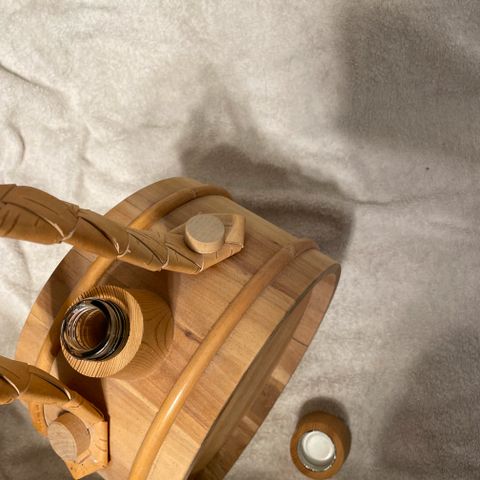Myydään kuvassa näkyvä sisustus pullo jossa teksti: isän juomaa äidin luvalla. Pullo lukitussa telineessä jonka lukkoon ei ole avainta ja pullon neste koristeena. Hinta:30€.
