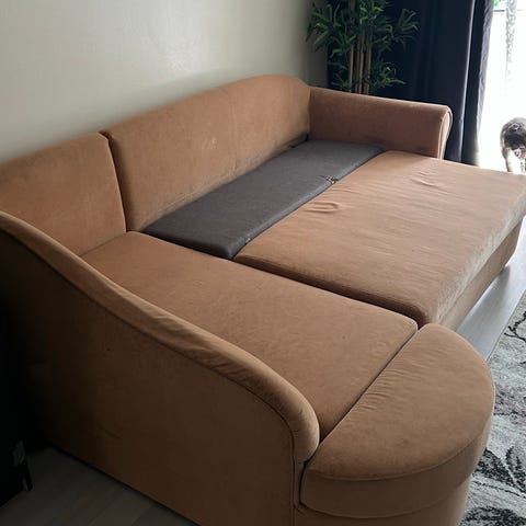 Siisti,ehjä, tukeva ,paksut patjat, ei "halpis" ei juuri uutta häpeä,vuodesohva 2 h. sänky,todella kätevä avata ja sulkea.kaupan hinta n.700e nyt saat vain 90e