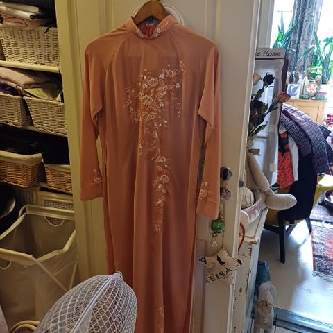 Retro haalean vihreä tunika tai minimekko. Paljon yksityiskohtia. Sivulla pukemista helpottava piilovetoketju. Hauskat taskut.