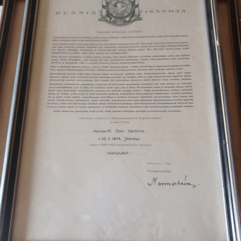Väestönsuojelupäällikön myöntämä kunniamaininta.