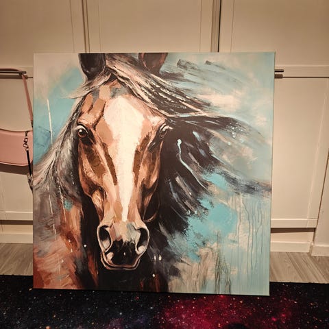 Heppa tytön unelma. Upea lasinen hevostaulu. Koko 40 x60cm.
