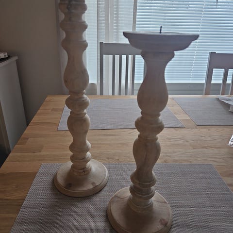 Hyvälaatuiset, tukevat kynttilänjalat. Eivät ole hopeaa. Pituus 26 cm ja pohjat pehmustettu. Erinomaisessa kunnossa, joitakin pieniä käytönjälkiä. Myydään mielellään parina, hinta yhdelle.