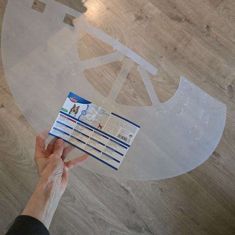 Koiran trixie haavasuojakauluri. Käyttämätön, vain kasattu ja todettu liian matalaksi pitkäkuonoiselle koiralle.