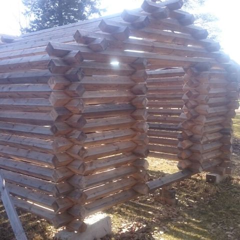 3m x 3m 75mm parrusta tehty lato myytävänä. Kuvassa samanlainen lato sillä erolla että myynnissä oleva lato on käsitelty tumman ruskeaksi. Sisältää parrut seiniin ja katon tuki rakenteisiin, oven ja oven pielet mutta ei katon alus eikä pinta rakenteita eikä saranoita ja lukkoa oveen.
