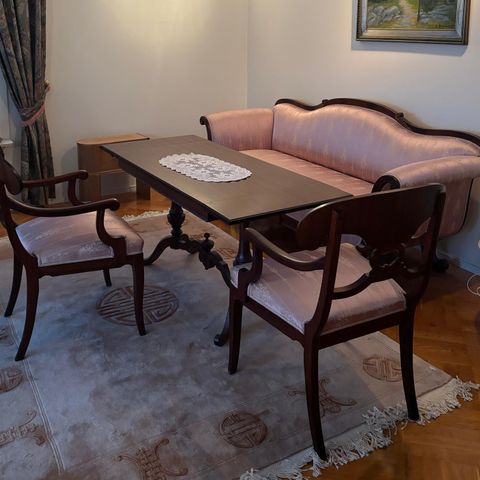 Pöytä ja neljä tuolia. N 100 v vanhat. Nouto Mikkelistä.