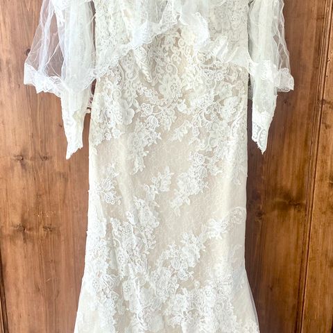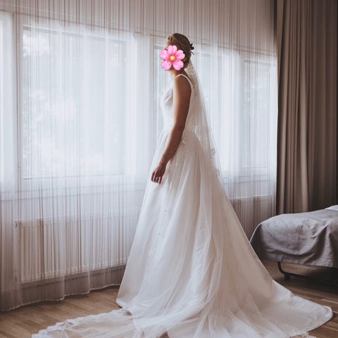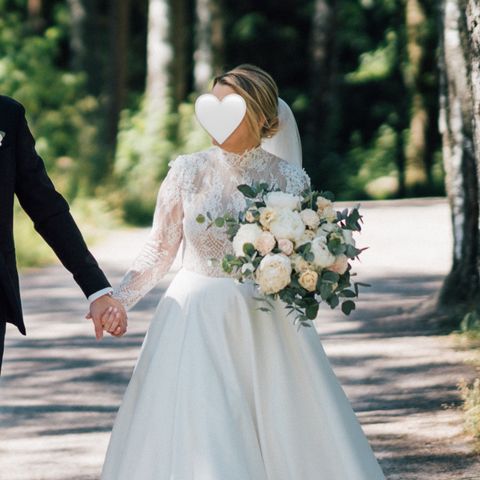 Morsiamen koko S/M, pituus 170cm + 5cm korot.