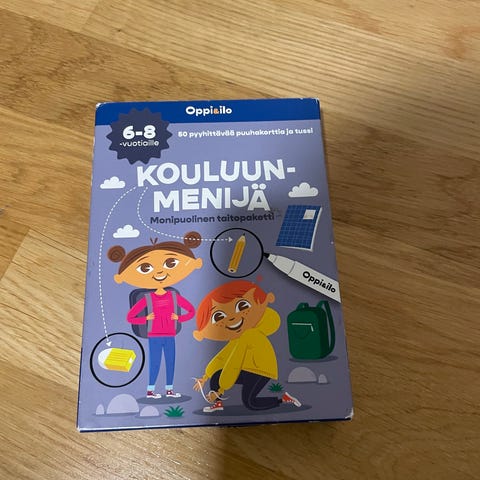 Oppi&Ilo Koululainen 1 -puuhakortit. Vähälle käytölle jääneet puuhakortit ja tussi. Monia kortteja ei ole käytetty ollenkaan. Tussikin on hyväkuntoinen.