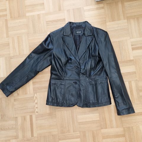 Varmaan 20 vuotta vanha naisten nahkatakki koko 40. Hihassa nirhauma muuten ehjä ja ok kunto.