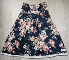 Newbie-merkkinen hihaton(/frillahihat) kukkakuvioinen mekko tummansinisellä pohjalla. Käytettynä ostettu, mutta meillä ei ehtinyt käyttöön kun olikin jo jäänyt pieneksi...Uudenveroisessa kunnossa.