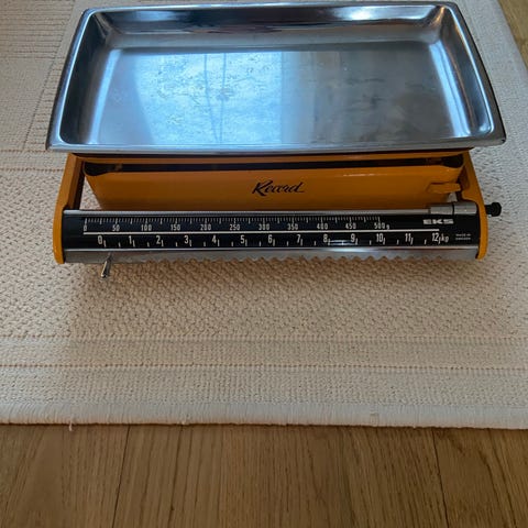 Tuollainen vanha vaaka ja pari punnusta. En tiedä miten tarkka peli on mutta kelpaa ainakin koristeeksi.