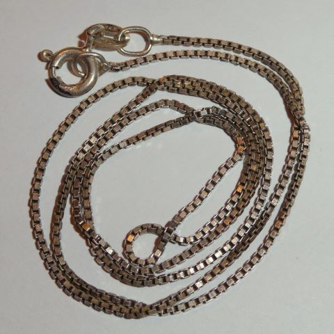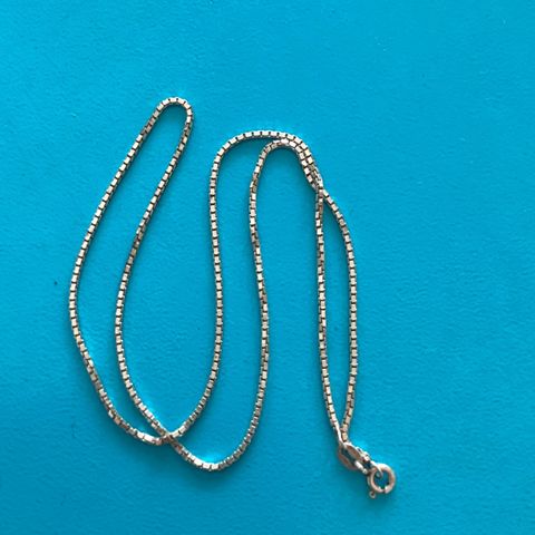Hopeinen Venetsia riipusketju. Pituus noin 44 cm. Leveys noin 1 mm, mielestäni vähän yli millin mutta ei ole tarkempaa mittausvälinettä. Leima 925S. Hyväkuntoinen kaulaketju aitoa hopeaa, luultavasti tanskalainen hopeaketju, ei valmistajan nimileimaa. Myynnissä myös ketjuun sopivia hopeisia riipuksia, joten kannattaa selata muitakin ilmoituksiani täällä Torissa.