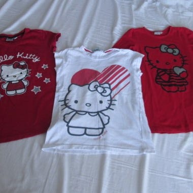 Kokmen t-paidan paketti. Hello Kitty MYYTY. Pinkki girl2girl 122 cm, muut 128 cm. Raitapaita Kappahl, sininen Disney Frozen.