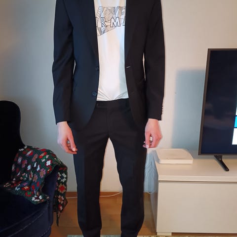 Vähän käytetty musta peruspuku. Ehjä ja siisti. Tule kokeilemaan.