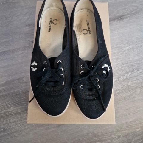 Myydään naisten mustat Fred Perry "Aubrey Twill" -malliset kangastennarit. Koko 39. Vastaa hyvin kokoaan.