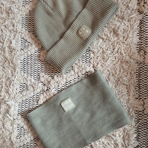 Myydään uusi käyttämätön mielettömän kaunis beige Kiddow pipo ja kauluri. Pipo kokoa S, kauluri one size.