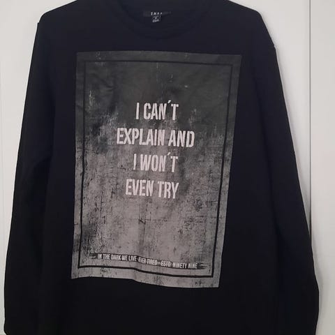 Miesten laadukas college-paita, haaleita väritahroja löytyy, kun oikein suurennuslasilla katsoo. Hinnassa huomioitu!