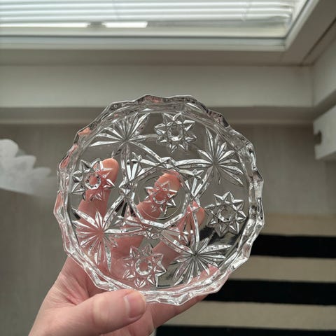 Myydään alkuperäispakkauksessaan oleva lasinalunen, joka huokuu vintage-tyylistä charmia.