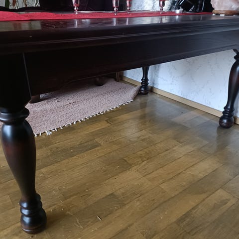 Noin kymmenen vuotta vanha, hyvässä kunnossa oleva, iso näyttävä pöytä.
