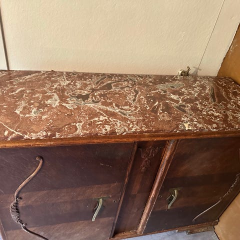 Lipastossa kaksi kaappia ja yksi vetolaatikko. Lipaston mitat: (150) 120×38×68